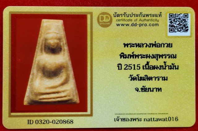 พระผงสุพรรณ หลวงพ่อกวย เนื้อผงน้ำมัน ปี2515 วัดโฆสิตาราม พระดูง่าย +พร้อมบัตรดีดีพระครับ