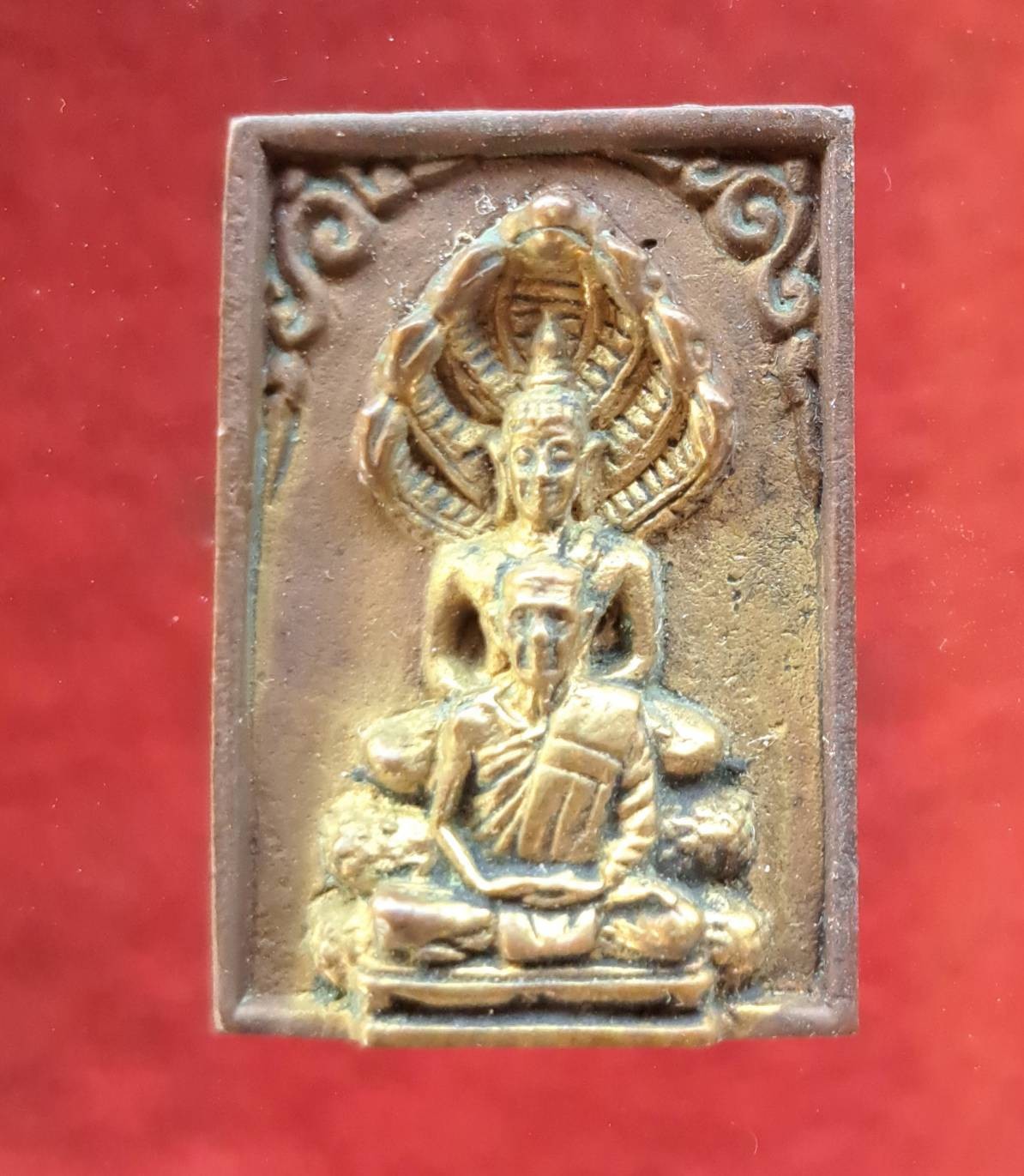 เหรียญหล่อนาคปรกพิมพ์ซ้อน หลวงพ่อเชิญ วัดโตกทอง จังหวัด อยุธยา เสาร์ ๕ ปี ๒๕๓๖ พร้อมกล่องเดิมๆ