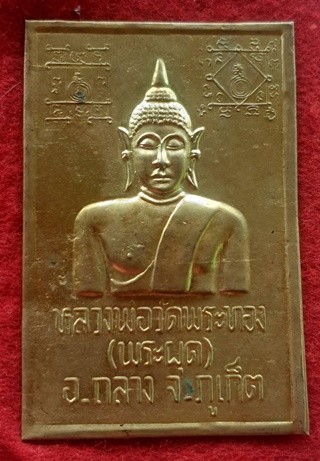 แผ่นปั๊ม หลวงพ่อวัดพระทอง {พระผุด} อำเภอถลาง จังหวัด ภูเก็ต เนื้อฝาบาตร ขนาด2.5X4นิ้ว