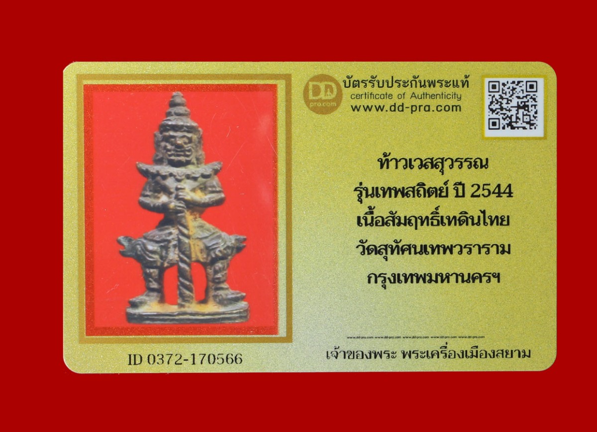 ท้าวเวสสุวรรณ รุ่นเทพสถิตย์ ปี 2544 เนื้อสัมฤทฝะิฝฝฝฝืเทดินไทย วัดสุทัศนเทพวราราม กรุงเทพมหานคร