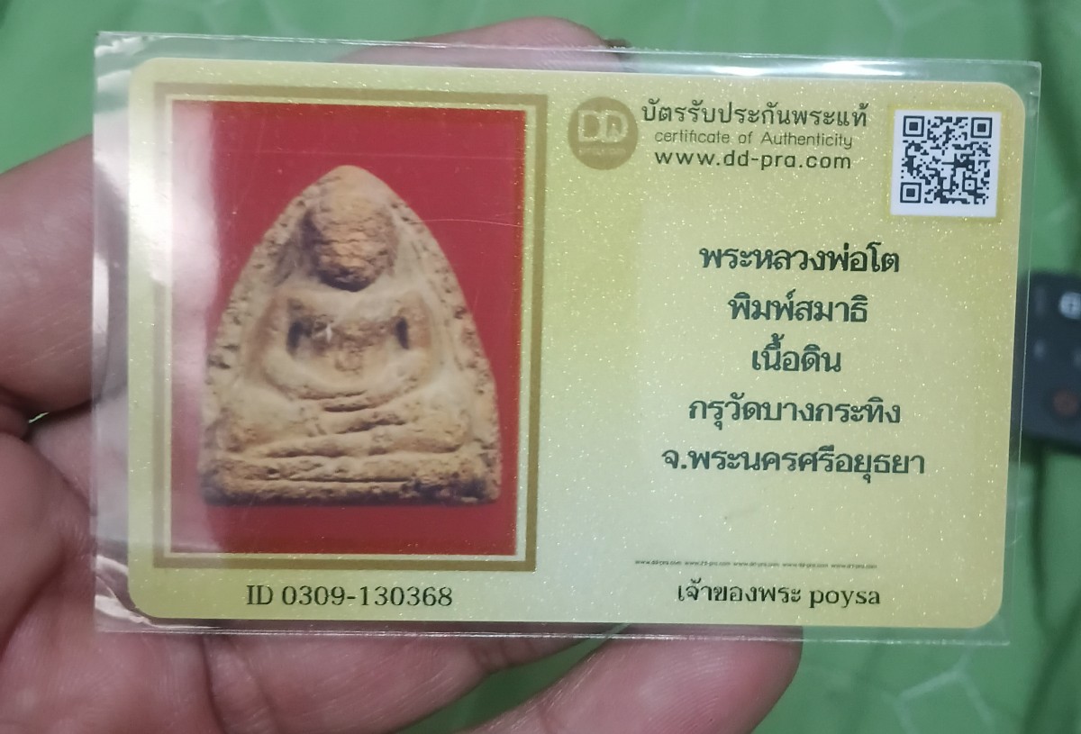 สมเด็จโตกรุบางกระทิงพร้อมบัตรรับรองจาก DD-PRA