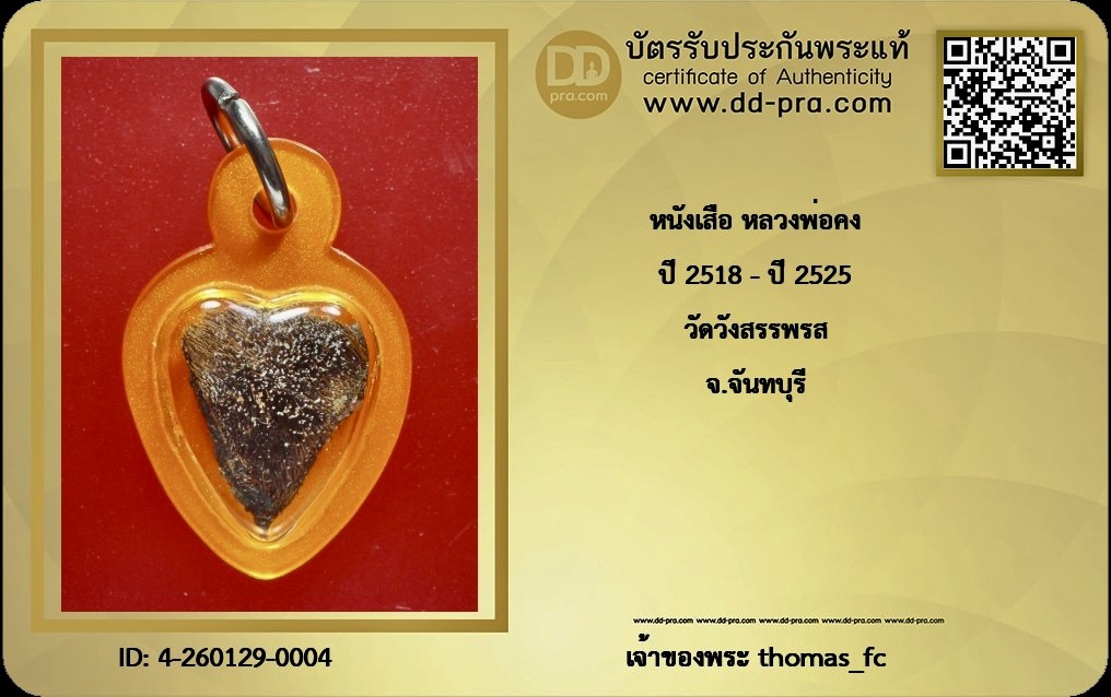 วัดใจ 10 บาท กับ หนังเสือ หลวงพ่อคง ปี 2518 - ปี 2525 วัดวังสรรพรส จ.จันทบุรี+ใบรับรอง