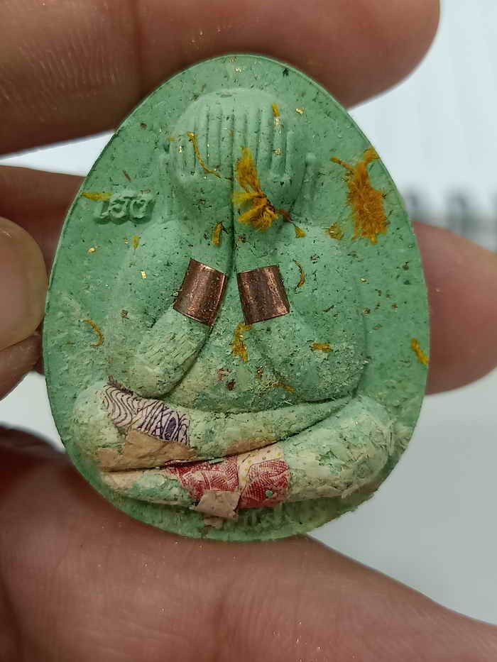 2-58 วัดใจ 50 พระผงปิดตา เฮง แสนล้าน หลวงปู่เฮง ปภาโส (บ้านด่านช่องจอม) ออกวัดสะตอน้อย อ.ขลุง จ.จันทบุรี ปี 2565 เนื้อเขียวเหนี่ยวทรัพย์ โรยแบงค์ หมายเลข 5 กล่องเดิม