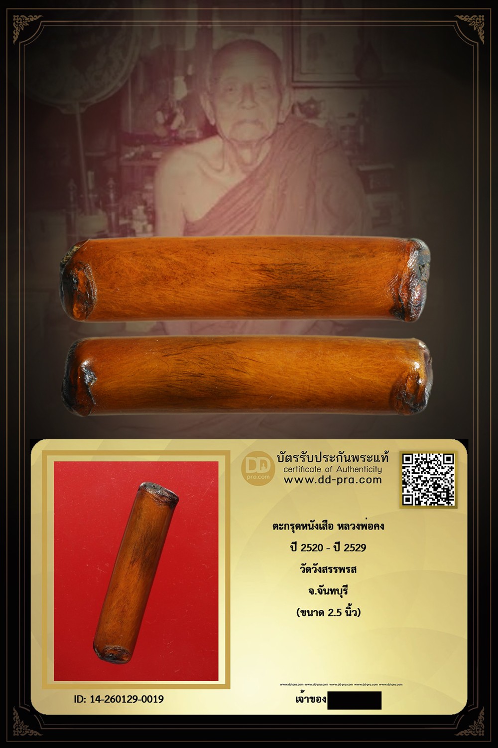 +++ เริ่มประมูล พระแท้ๆ เริ่ม 40 บาท ครับ ตะกรุดหนังเสือ หลวงพ่อคง วัดวังสรรพรส ปี 2520 - ปี 2529 จ.จันทบุรี หุ้มด้วยยาง +++ หายากมาก ครับ ข้อมูลตามบัตรรับประกัน +++