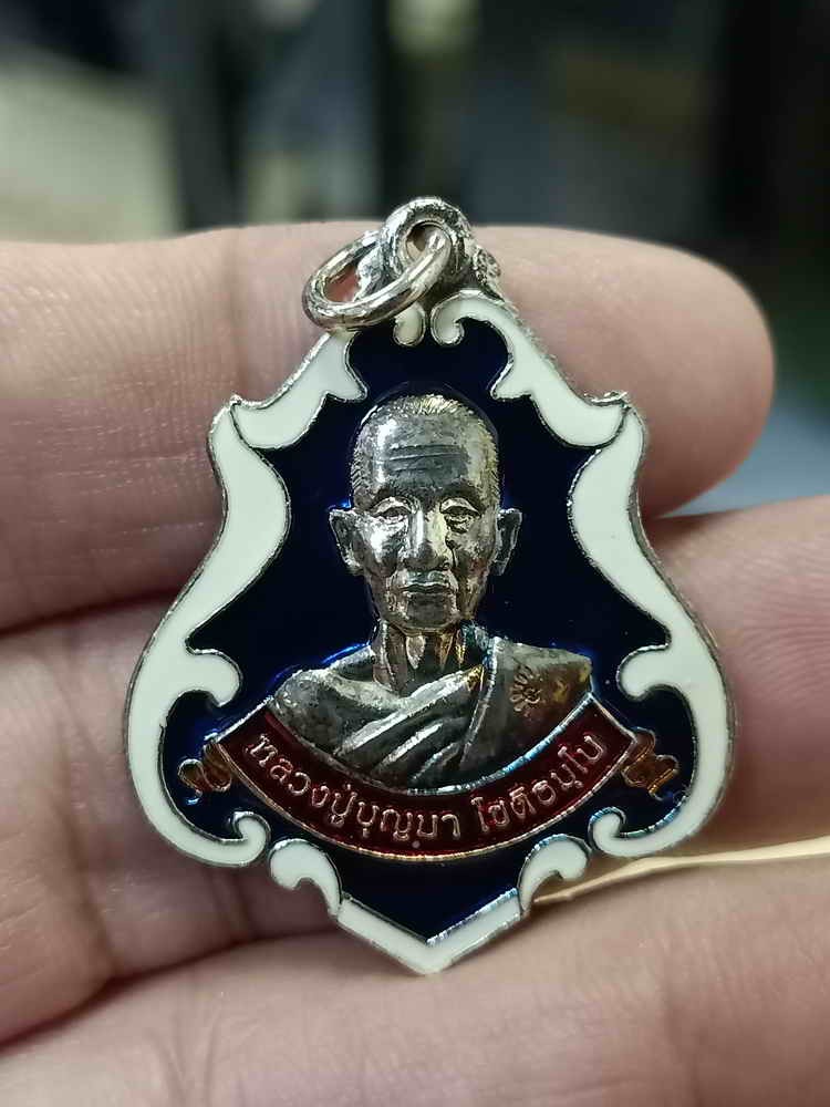 2-174 วัดใจ 100 เหรียญปาดตาล รุ่นรวยเหนือฟ้า มีไว้ไม่จน คงกระพันชาตรี หลวงปู่บุญมา วัดบ้านแก่ง จ.ปราจีนบุรี กะไหล่เงิน ลงยาขาวน้ำเงินขาว ตอดโค้ด+เลขลงยาทับ ไม่มีกล่อง