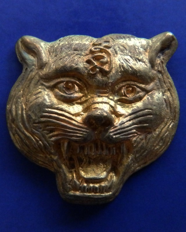 4.หน้ากากเสือหล่อโบราณ เนื้อทองทิพย์ หลวงปู่คำบุ วัดกุดชมภู ตอกโค้ด+เลข พร้อมกล่องเดิม