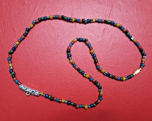 สร้อยคอลูกปัดทราวดี ลูกปัดโบราณสวยๆ ความยาว 24 นิ้ว สวมหัวได้หรือหมุนเกลียวทองเหลืองถอดออกก็ได้ สามารถห้อยพระได้ 1 องค์ (กท.18)