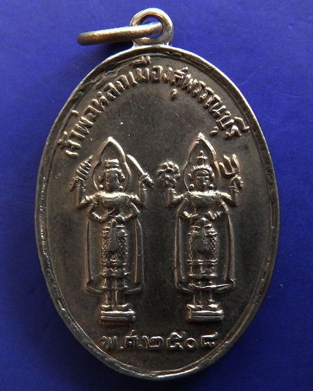 เหรียญศาลเจ้าพ่อหลักเมืองสุพรรณบุรี รุ่นแรก ปี 2508 บล๊อคนิยม ยันต์ใหญ่ หายาก