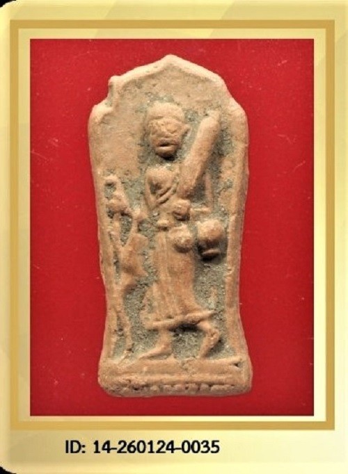 หลวงพ่อกวย พระสีวลี พิมพ์ใบมะยม เนื้อดิน ปี 2500 - ปี 2515 วัดโฆสิตาราม + บัตรรับรอง