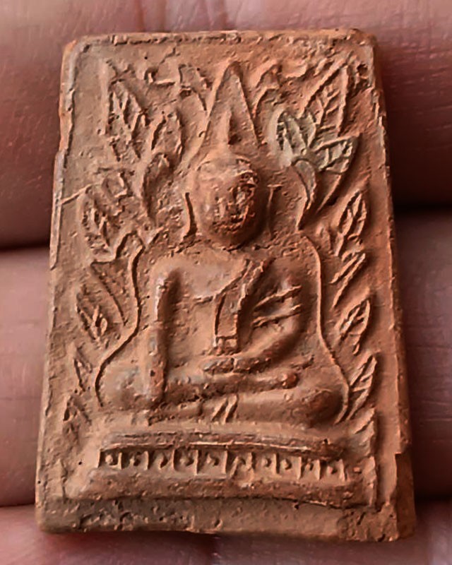 2.พระเนื้อดิน กรุทับผึ้ง จ.สุโขทัย พ.ศ. 2473 พิมพ์ซุ้มโพธิ์ หลังยันต์ สูง 3 ซ.ม.