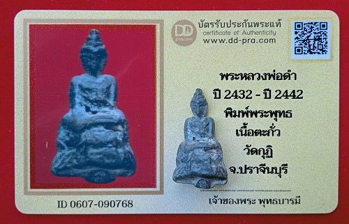 พระหลวงพ่อดำ ปี 2432 - ปี 2442 พิมพ์พระพุทธ เนื้อตะกั่ว วัดกุฏิ จ.ปราจีนบุรี + บัตรรับรอง