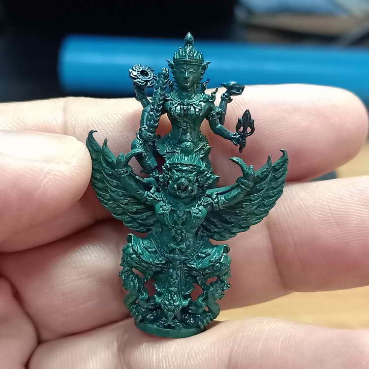 2-78 วัดใจ 300 รุ่นแรก รูปหล่อนารายณ์ทรงครุฑ รุ่นแรก หลวงพ่อสิน วัดละหารใหญ่จ.ระยอง ปี 2560 เนื้อพาติน่าเขียว หมายเลข 766 สวยนอนกล่องเดิม