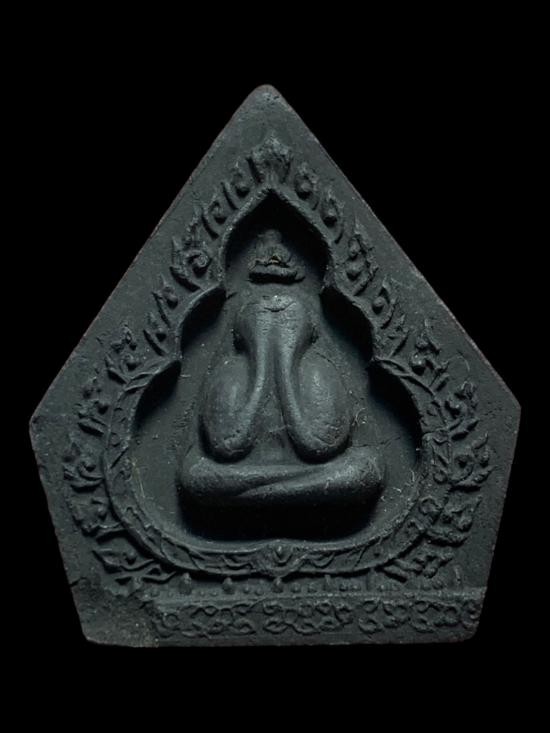 พระะปิดตาซุ้มลายกนก ห้าเหลี่ยม พระเทพชลธารมุนี เจ้าคุณวิเชียร จิตฺตวิริโย วัดเครือวัลย์ จ.ชลบุรี ปี 2519 เนื้อผงคลุกรัก ((ผสมผงเก่าหลวงพ่อแก้ว วัดเครือวัลย์)) สภาพเดิมเดิม