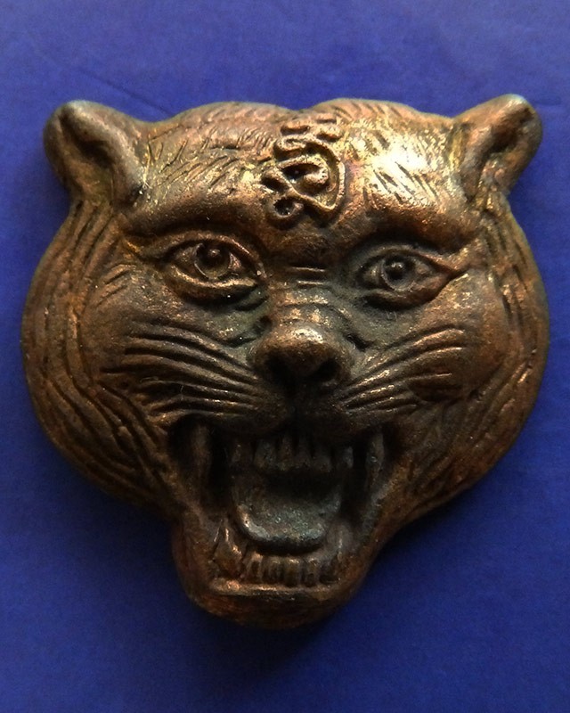 หน้ากากเสือหล่อโบราณ เนื้อสัตตโลหะ หลวงปู่คำบุ วัดกุดชมภู ตอกโค้ด+เลข พร้อมกล่องเดิม