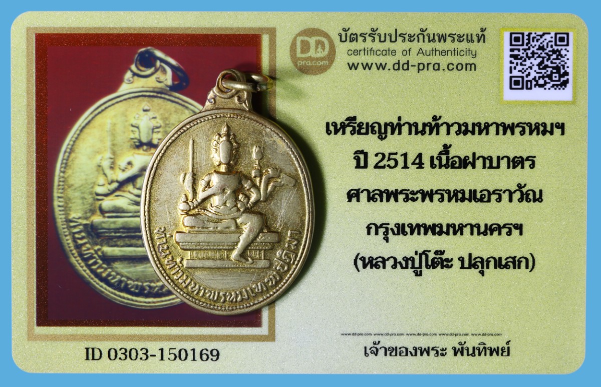 เหรียญท่านท้าวมหาพรหมเทพปฎิมาหลวงปู่โต๊ะ ปี 2514 เนื้อฝาบาตร ศาลพระพรหมเอราวัณ กรุงเทพมหานครฯ จัดสร้าง