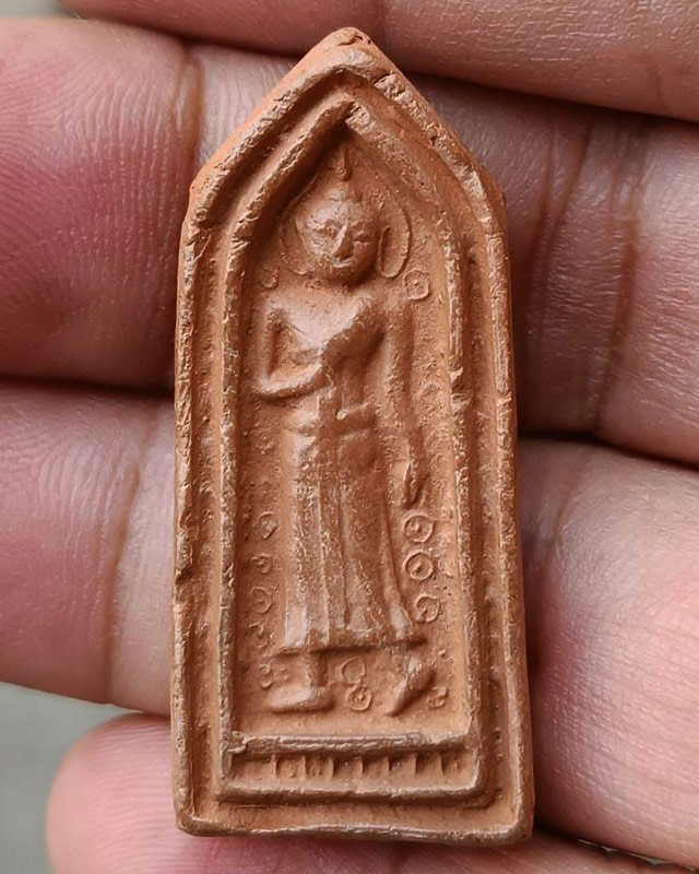 พระเนื้อดิน กรุทับผึ้ง จ.สุโขทัย พ.ศ. 2473 พิมพ์ลีลา หลังยันต์ สูง 4 ซ.ม.