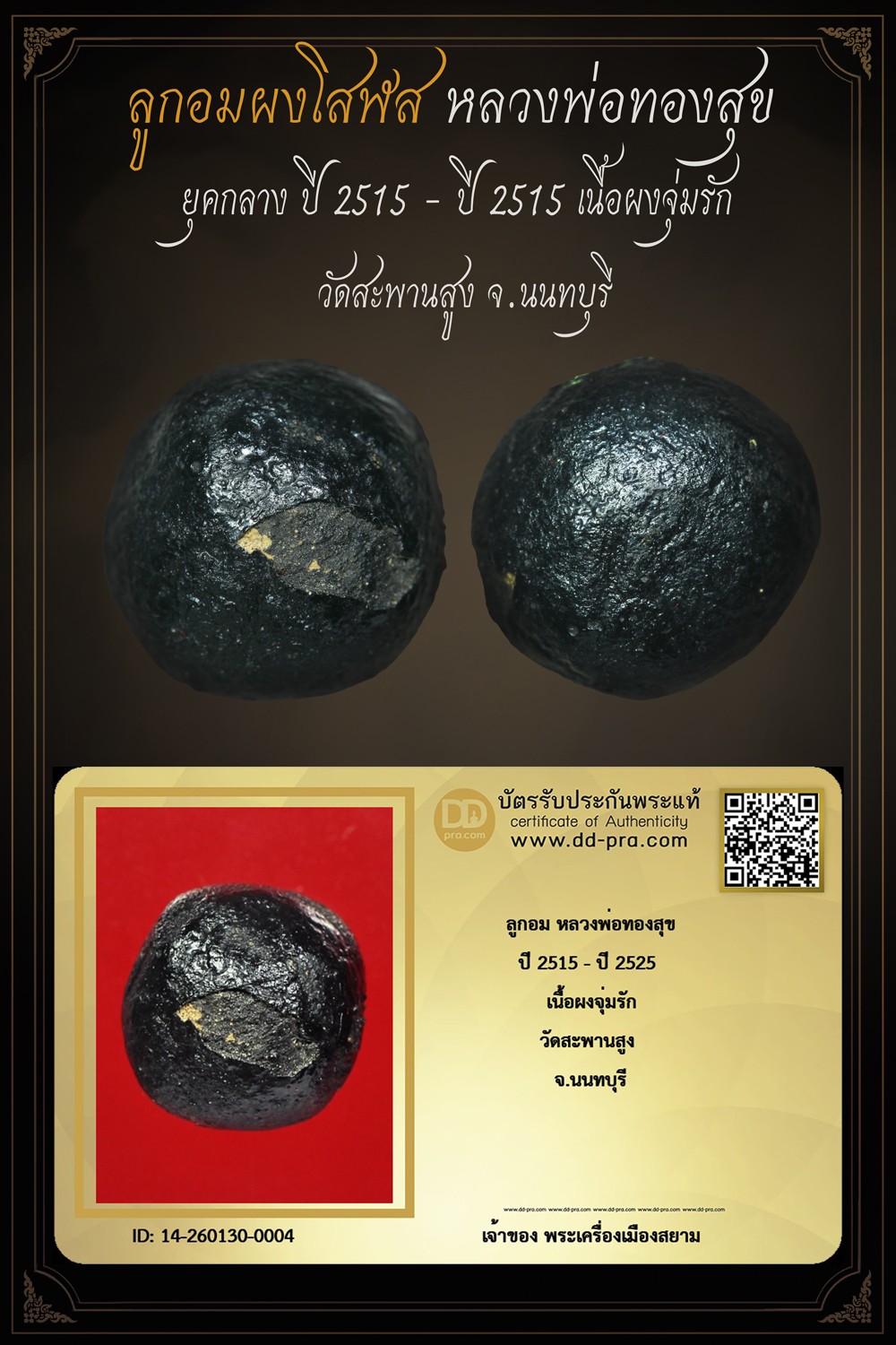 +++ เริ่มประมูล พระแท้ๆ เริ่ม 40 บาท ครับ ลูกอม หลวงพ่อทองสุข ปี 2515 - ปี 2525 วัดสะพานสูง จ.นนทบุรี เนื้อผงจุ่มรัก (เนื้อเดียวกับพระปิดตา) +++ หายากมาก ครับ ข้อมูลตามบัตรรับประกัน +++