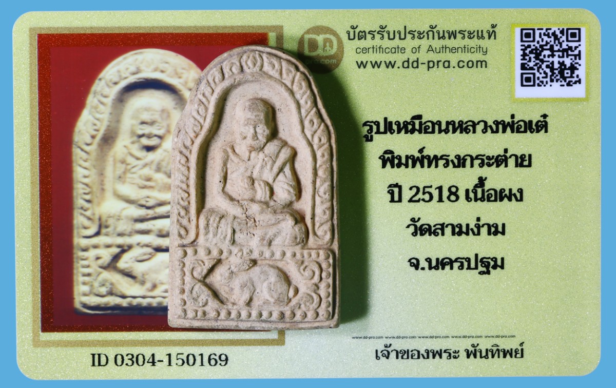 รูปเหมือนหลวงพ่อเต๋ พิมพ์ทรงกระต่าย ปี 2518 เนื้อผง วัดสามง่าม จ.นครปฐม