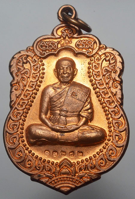 หลวงพ่อคูณ วัดบ้านไร่ เหรียญเสมาพายัพ 2553 เนื้อทองแดงผิวไฟ หลังยันต์ เลข 13682