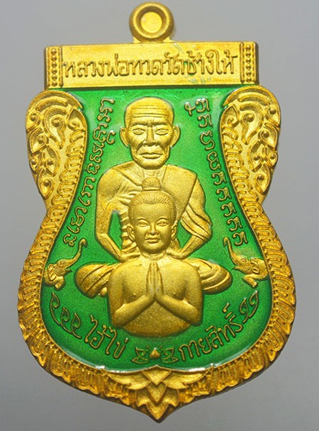 เหรียญเสมาพุฒซ้อน รุ่น ไ อ้ ไ ข่ กายสิทธิ์ วัดเสมาเมือง จ.นครศรีธรรมราช เนื้อทองระฆัง ลงยาสีเขียว เลข 522