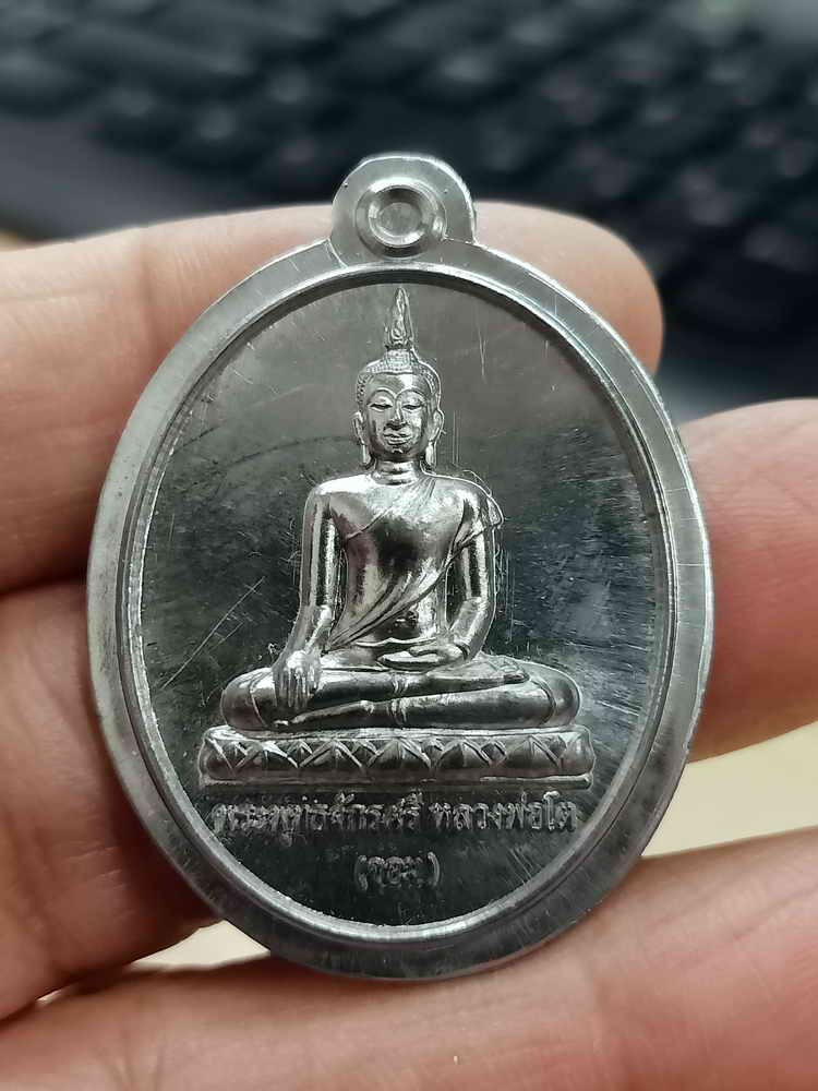 2-1716 วัดใจ 150 พระพุทธจักรศรี หลวงพ่อขอม-หลวงพ่อโต พระประจำพระอุโบสถ หลวงพ่อนงค์ วัดบางน้ำชน กรุงเทพ 2560 เนื้อตะกั่วหลังเรียบ จารมือ หมายเลข 992 กล่องเดิม