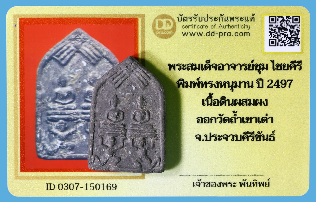พระสมเด็จอาจารย์ชุม ไชยคีรี พิมพ์ทรงหนุมาน ปี 2497 เนื้อดินผสมผง ออกวัดถ้ำเขาเต่า จ.ประจวบคีรีขันธ์