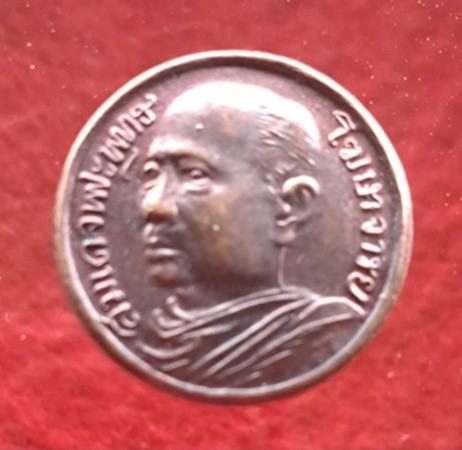 เหรียญกลมเล็ก สมเด็จพระพุทธโฆษาจารย์เจริญ หลังยันต์น้ำเต้า วัดเขาบางทราย จังหวัดชลบุรี เนื้อทองแดง