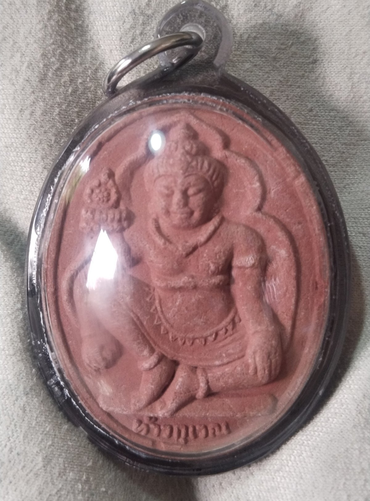 พระผงรูปเหมือน หลวงปู่สรวง เทวดาเล่นดิน หลังท้าวกุเวร เนื้อว่าน ปี 19
