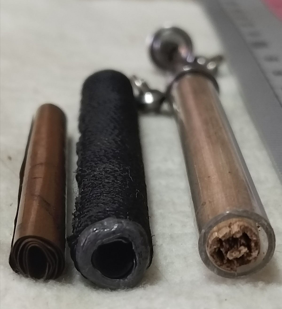 3)ตะกรุดทองแดง มีรอยจาร ขนาด 5 ซ.ม.