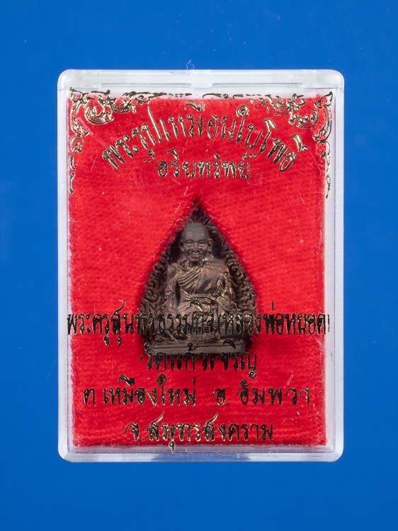 700.- พระหล่อรูปเหมือนใบโพธิ์ เนื้อนวะ หลวงพ่อหยอด วัดแก้วเจริญ สมุทรสงคราม ปี2536 พร้อมกล่อง
