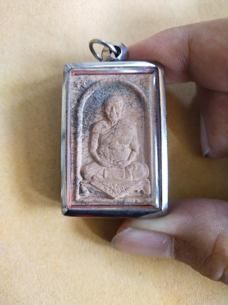300.-พระเนื้อผงรูปเหมือนหลวงปู่เจือ วัดกลางบางแก้ว จ.นครปฐมโรยผงตะไบ ปี2545 พร้อมตลับ