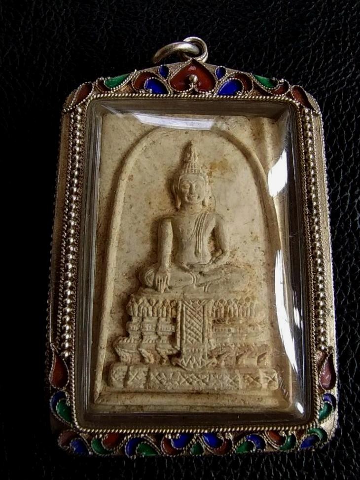 6000.-พระสมเด็จวัดไร่ขิง เนื้อผง ปี15 เลี่ยมเงินลงยาสุโขทัย+สร้อยเงินมือ 2 ลงยาสุโขทัยหนัก 4 บาทกว่า