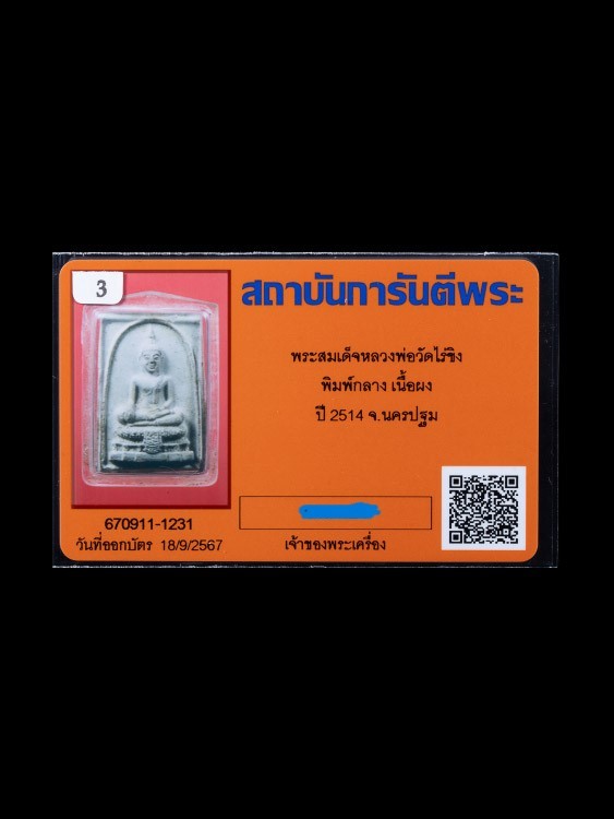 6000.-พระสมเด็จ วัดไร่ขิง จ.นครปฐม ปี2514 พิมพ์กลางพร้อมเลี่ยมองค์ที่1 +บัตรเพื่อนบ้าน