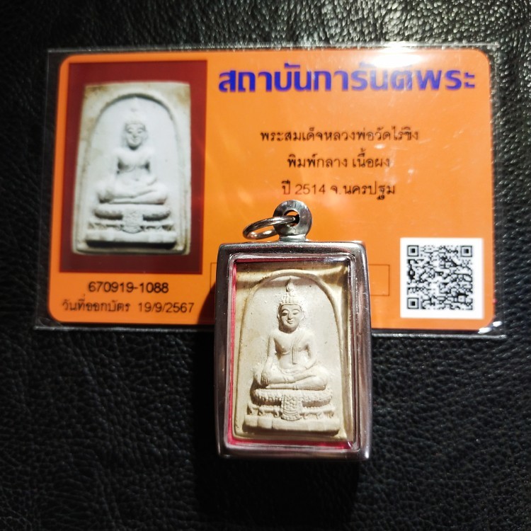 6000.-พระสมเด็จ วัดไร่ขิง จ.นครปฐม ปี2514 พิมพ์กลางองค์ที่2 +บัตรเพื่อนบ้าน