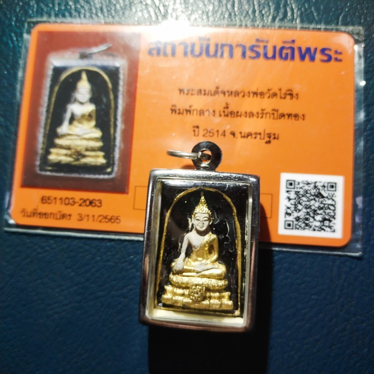 7500.-พระสมเด็จ วัดไร่ขิง จ.นครปฐม ปี2514 พิมพ์กลางลงรักปิดทององค์ที่1 +บัตรเพื่อนบ้าน