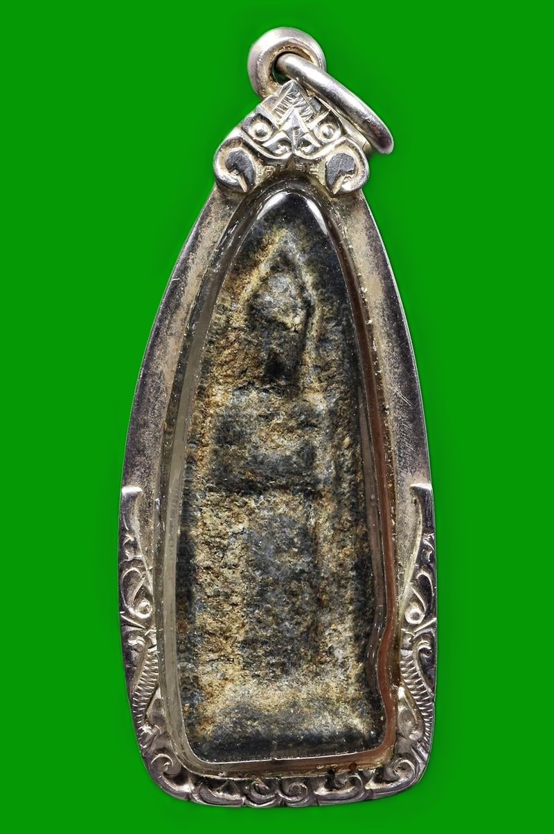 พระมีขนาดสูงประมาณ3.5 ซม. กว้างประมาณ 1.3 ซ.ม.ถ้าวัดรวมกรอบด้วยจะกว้างประมาณ 1.8 ซม. สูงประมาณ 4.5 ซม. เลี่ยมกรอบเงินขัดมันยกซุ้มด้านหน้า เนื้อหาดูเก่าอยู่ องค์พระเหมือนคล้ายๆพระพุทธรูปยื่นอุ้มบาตร แต่ก็ไม่ชัดเจน ไม่ทราบที่ไหน ดูให้ชอบก่อนร่วมประมูลจะไม่เสียเวลากันครับ ถูกใจก็เชิญครับ