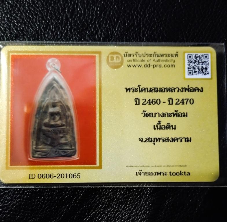 6500.-พระโคนสมอเนื้อดิน หลวงพ่อคง วัดบางกระพร้อม จ.สมุทรสงคราม เนื้อดิน ประมาณปี2460-2470+บัตรดีดี+สร้อยหัวขุน
