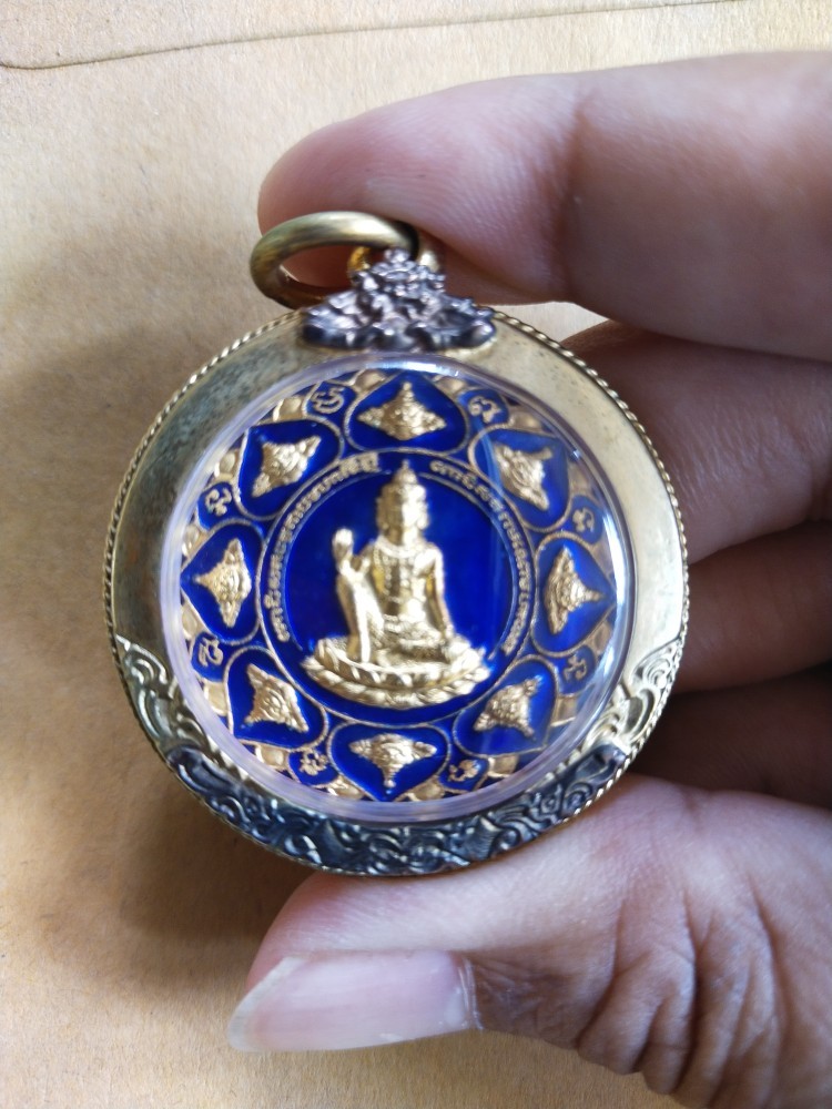 500.-จตุคามรามเทพ เนื้อกะไหล่ทองลงยาน้ำเงิน รุ่นหลักเมืองมหามงคล วัดหน้าพระบรมธาตุ จ.นครศรีธรรมราช ปี2550 พร้อมตลับ