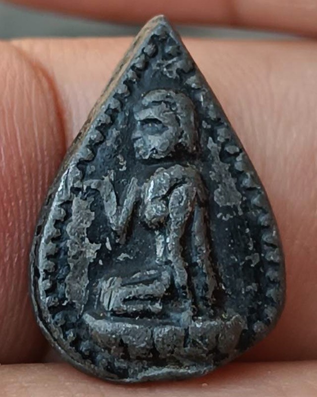 พระกลีบบัวพิมพ์นางกวักข้างเม็ด เนื้อตะกั่วชุบรัก หลวงพ่อเดิม วัดหนองโพ นครสวรรค์ สูงประมาณ 2 ซ.ม.