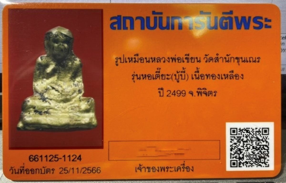 2900.-รูปหล่อโบราณ หลวงพ่อเขียน วัดสำนักขุนเณร จ.พิจิตร ปี2499 รุ่นหอเตี๊ยะ เลี่ยมเงิน + บัตรเพื่อนบ้าน
