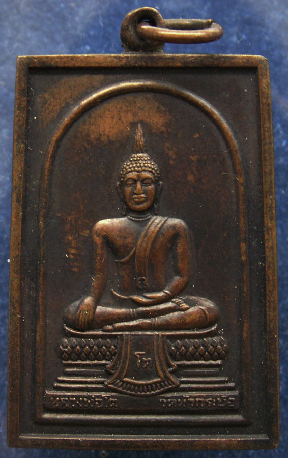 เหรียญสี่เหลี่ยมหลวงพ่อโต วัดหัวกระบือ หลังยันต์ สภาพสวย สูง 3.5 ซ.ม.