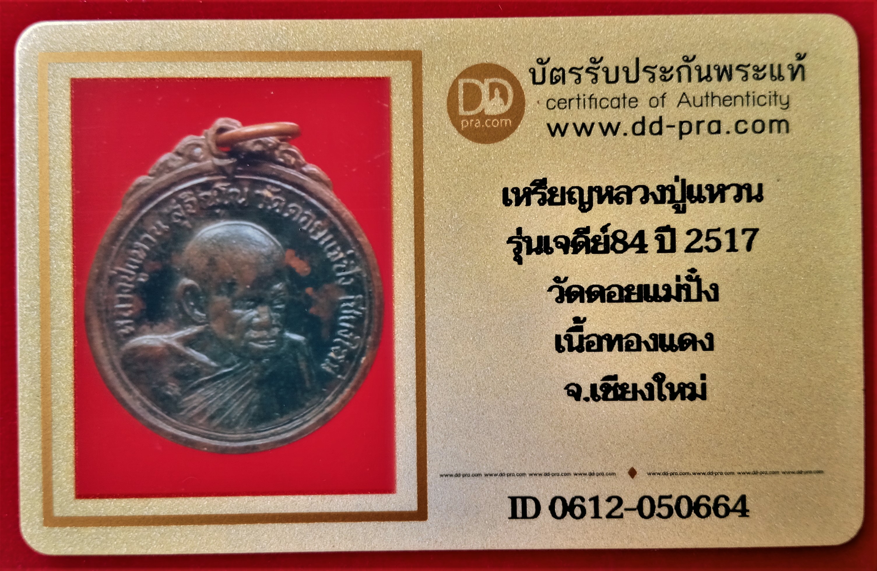 หลวงปู่แหวน รุ่นเจดีย์ 84 ปี 2517 วัดดอยแม่ปั๋ง เนื้อทองแดง จ.เชียงใหม่ + บัตรรับรอง