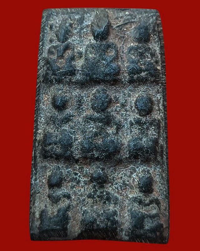 พระกำแพงห้าร้อยตัดเก้าพิมพ์ 2 หน้า เนื้อชินเขียว (ชินอุทุมพร) ขนาด 3.8 x 2.2 ซ.ม.