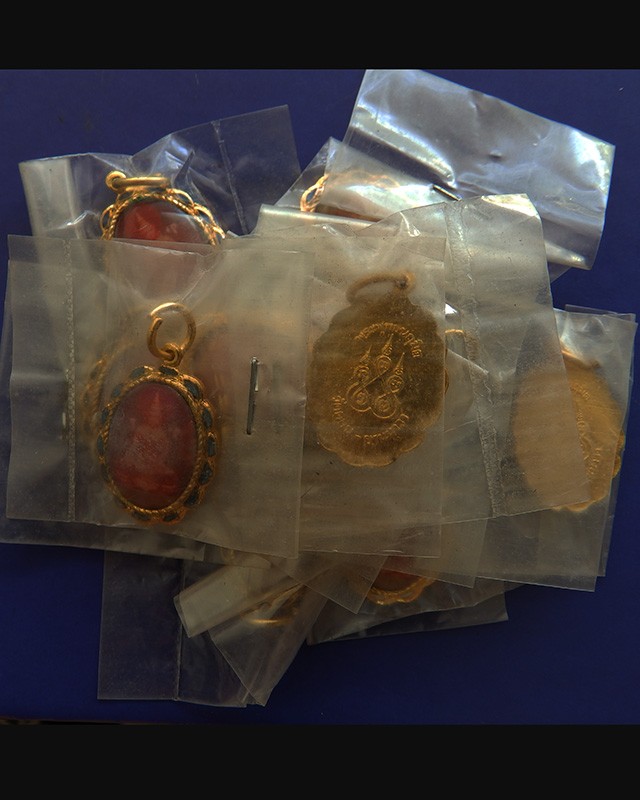ลงยามีหลายสี มีแบบซองพลาสติกเดิมๆ และที่ซองเก่าแตก แกะออกมาถ่ายรูปครับ ทุกองค์ไม่ผ่านการใช้ (ภาพตัวอย่าง)