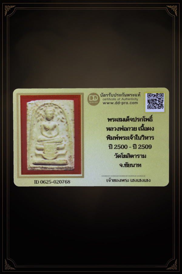+ + พร้อมบัตร + + พระสมเด็จปรกโพธิ์ หลวงพ่อกวย เนื้อผง พิมพ์พระเจ้าในวิหาร ปี 2500 - ปี 2509 วัดโฆสิตาราม จ.ชัยนาท