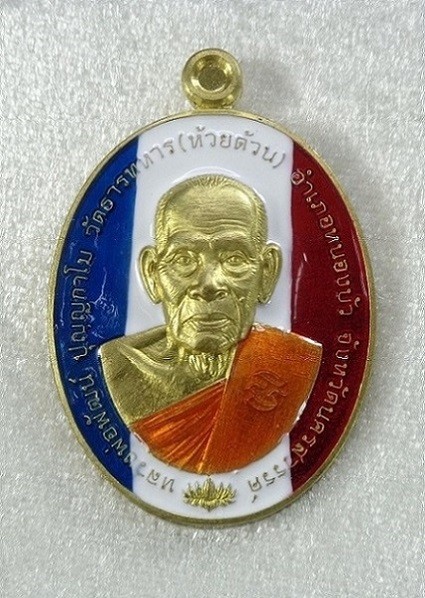 เหรียญรูปไข่หลวงพ่อพัฒน์ วัดห้วยด้วน จ.นครสวรรค์ รุ่นสาระพัดดีชนะจน เนื้อทองทิพย์ลงยาลายธงชาติ สวยครับ
