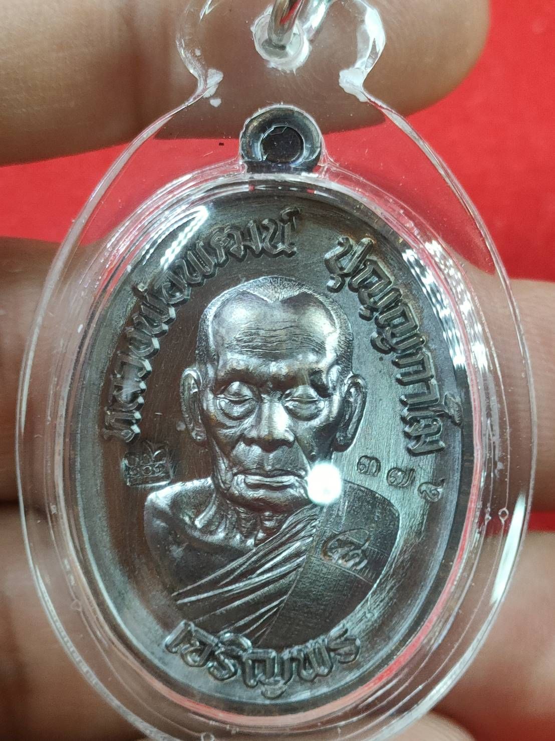 เหรียญเจริญพร 3 หลวงพ่อพัฒน์ วัดห้วยด้วน ปี 2565 เจริญพรล่าง เนื้อทองแดงรมดำ เลข 378 เลี่ยมพร้อมใช้  ไม่มีกล่อง