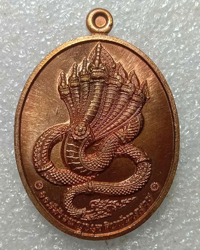 เหรียญท้าวพญามุจลินจ์นาคราช วัดถ้ำวังผาพญานาคราช อ.โขงเจียม จ.อุบลฯ เนื้อทองแดง หมายเลข ๗๗๒๐