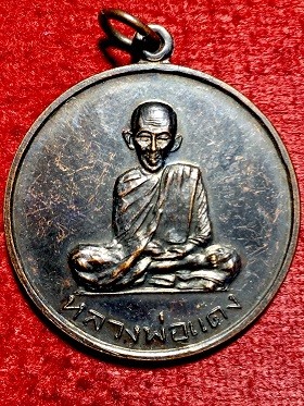 เหรียญกลมใหญ่หลวงพ่อแดง วัดแหลมสอ เกาะสมุย จ.สุราษฎร์ธานี เนื้อทองแดงรมดำ ๒๕๑๓