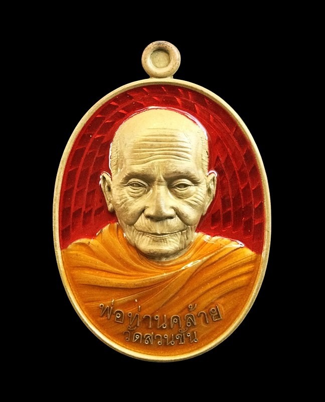 เหรียญ พ่อท่านคล้าย หลังหลวงปู่ทวด วัดสวนขัน จ.นครศรีธรรมราช เนื้อสัตตะโลหะ ลงยาแดง หมายเลข 25 พร้อมกล่องเดิม